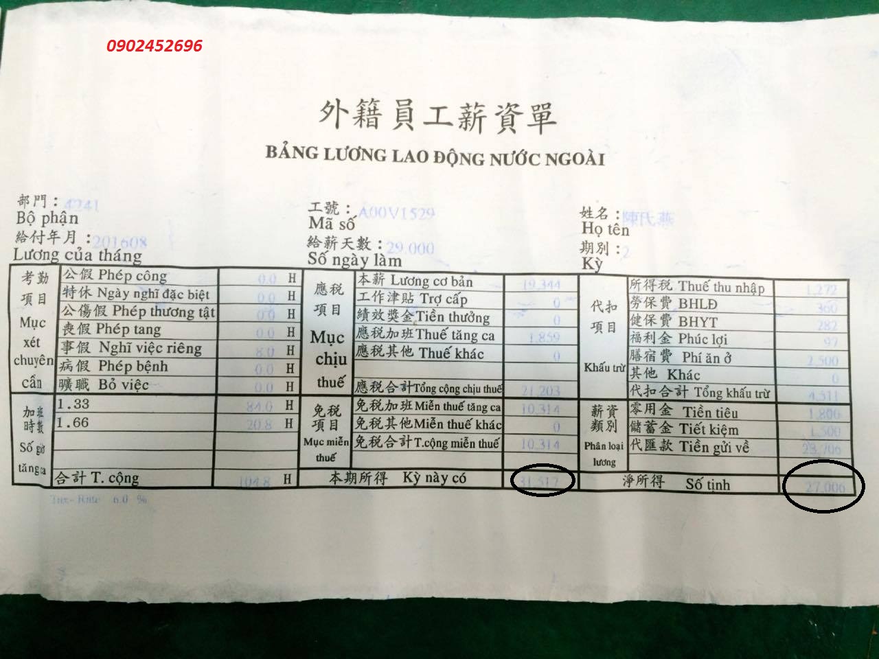 lương cơ bản:20008,thu nhập bình quân 30.000 đài tệ |